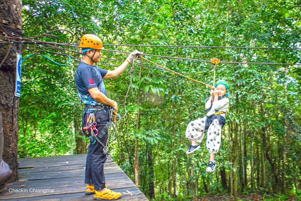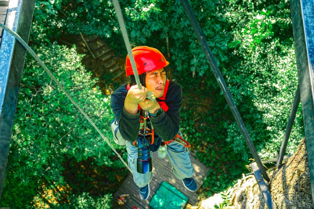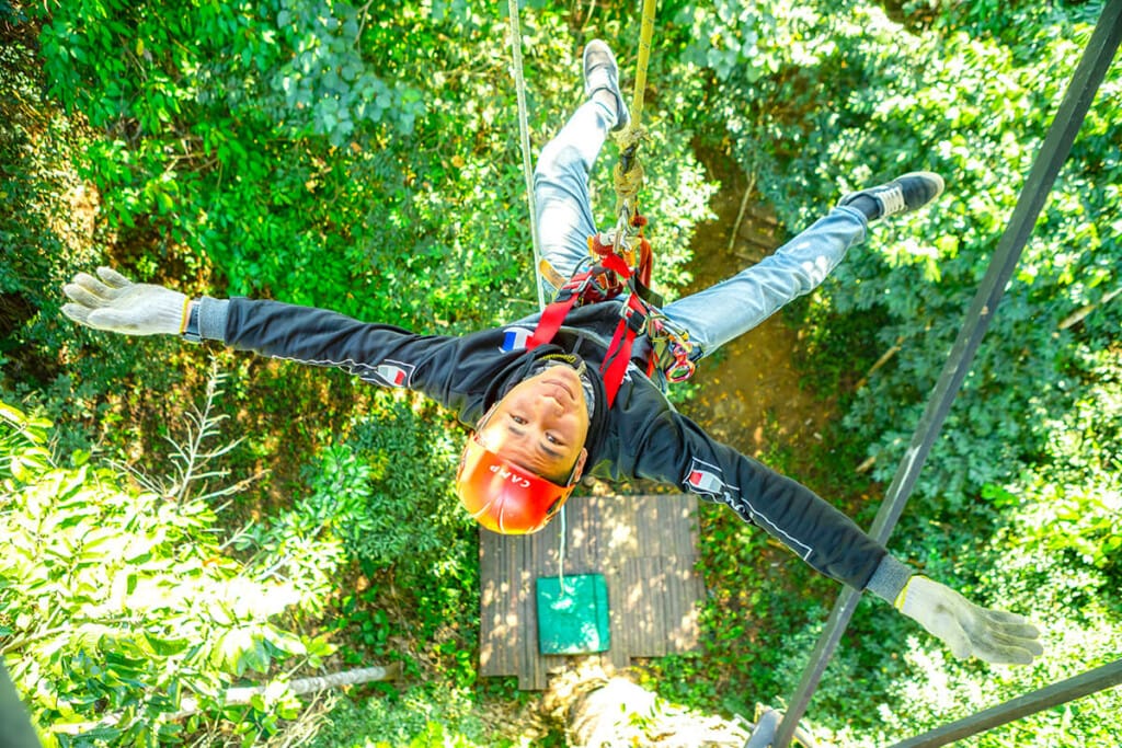 On the short course, you will fly through 18 ziplines, 18 platforms, sky bridges, net ladders, staircases, and two abseilings. It takes nearly one hour for this course.