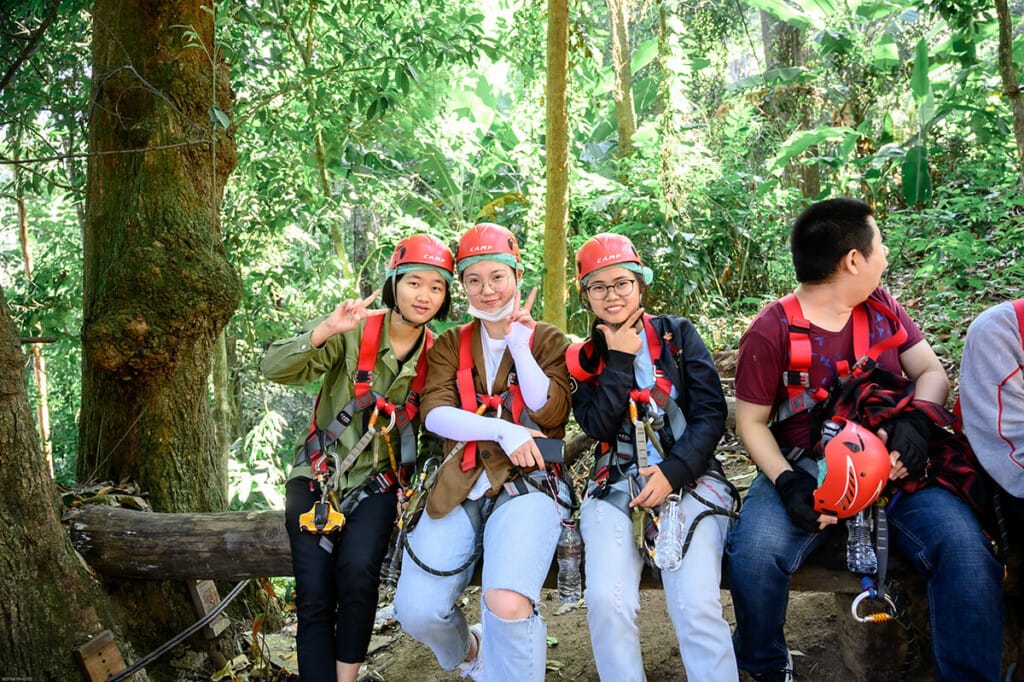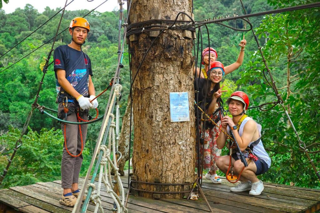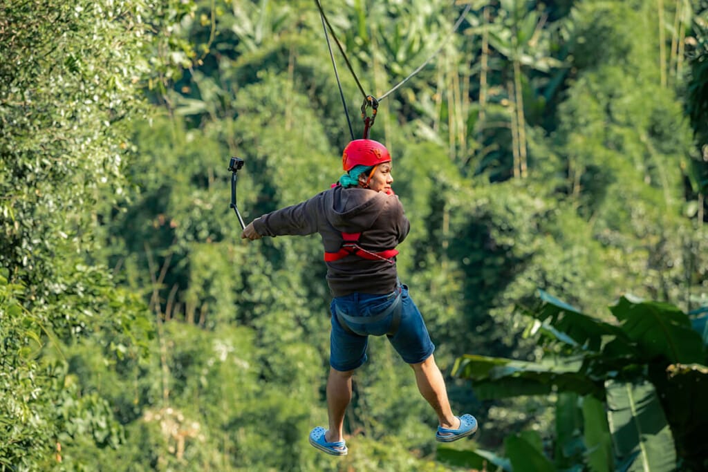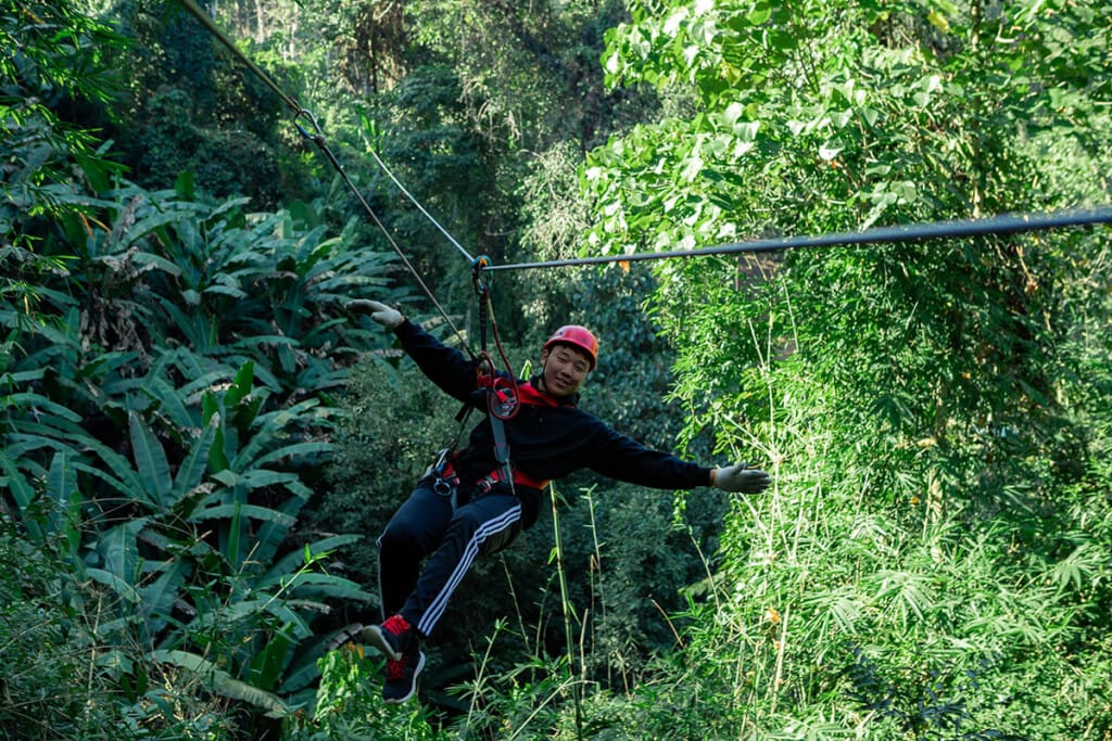 Flying through 33 ziplines includes: