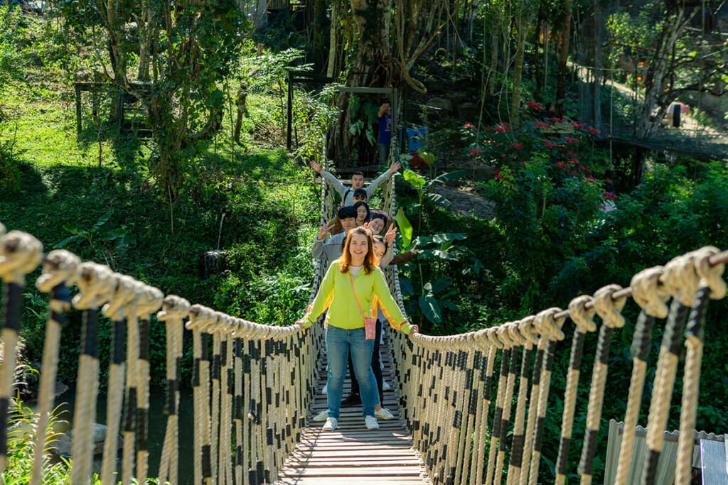 With the full course, you are flying through 33 ziplines, 34 platforms, sky bridges, 2 net ladders, 3 staircases, and 3 abseilings. This course typically takes between 1 and 1.30 hour to complete.