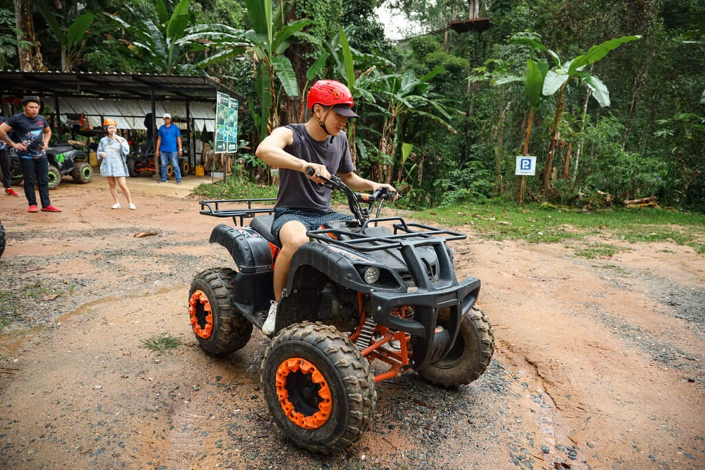 Those who are just starting out on their ATV adventure might enjoy the 3.5-kilometre course. To ease your transition into the vehicles, we begin with comprehensive instructions and a training session. For those looking to experience the local area in a new light, this route, which combines road and off-road jungle terrain, is ideal. Based on factors such as weather, road conditions, and driver abilities, we select one of several tracks. Please inform us of your riding skills if you have experience with ATVs.